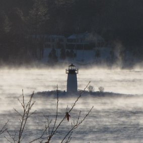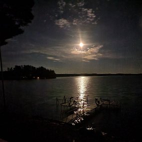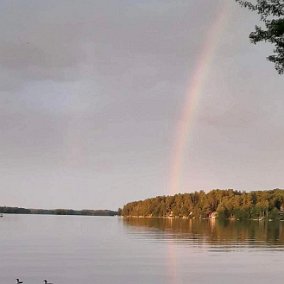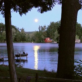 Relaxing view looking down the lake from the deck. Another lake view from the deck. Beauty everywhere you look. Late afternoon light across the cove. Autumn light brings the camps across the cove to life. Ladies Delight lighthouse: Burning bright since 1908. Anyone for some winter sports? Morning view from the deck. Misty morning sunrise view of the cove. Lakeside Marina. Ladies Delight lighthouse in the morning mist. Sunset: Time for relaxing, cocktails, and planning for your next adventure. Sunset on the water. Moonrise across the cove. Moonrise over the lake. A nice rainbow looking down the lake. Across the cove, before docks are in. A rare site: a moose swimming in front of the Camp. The CampThe Interior